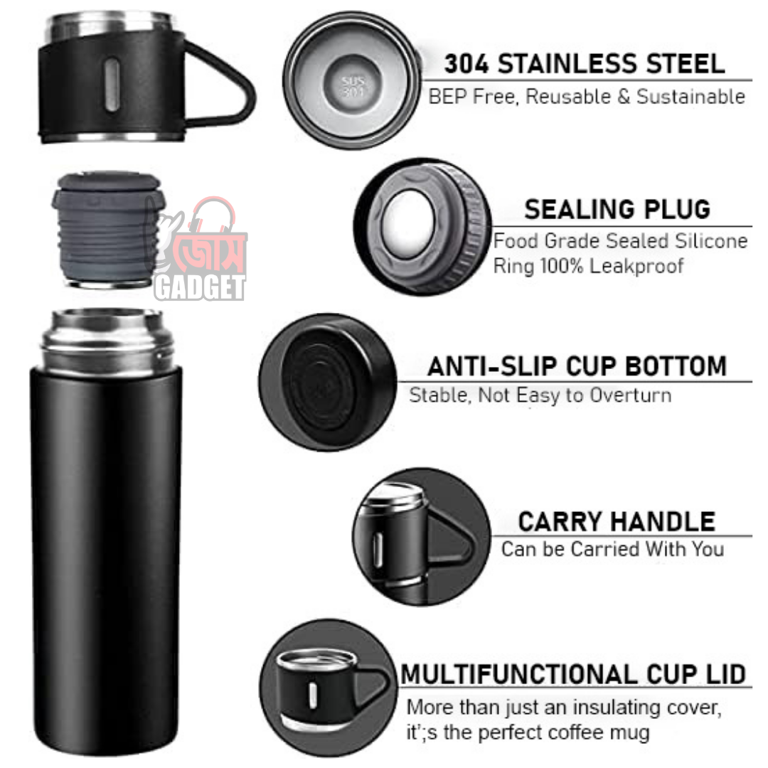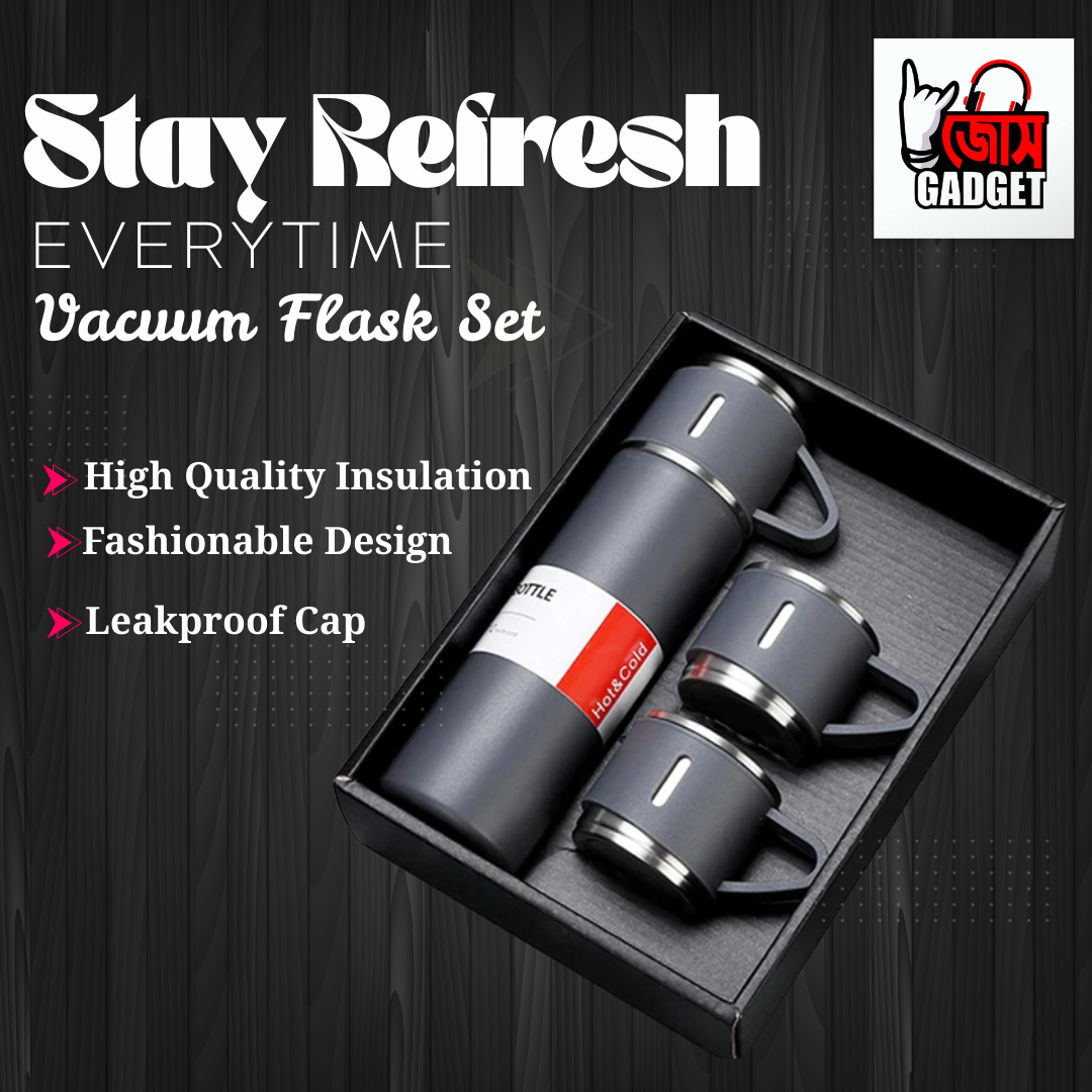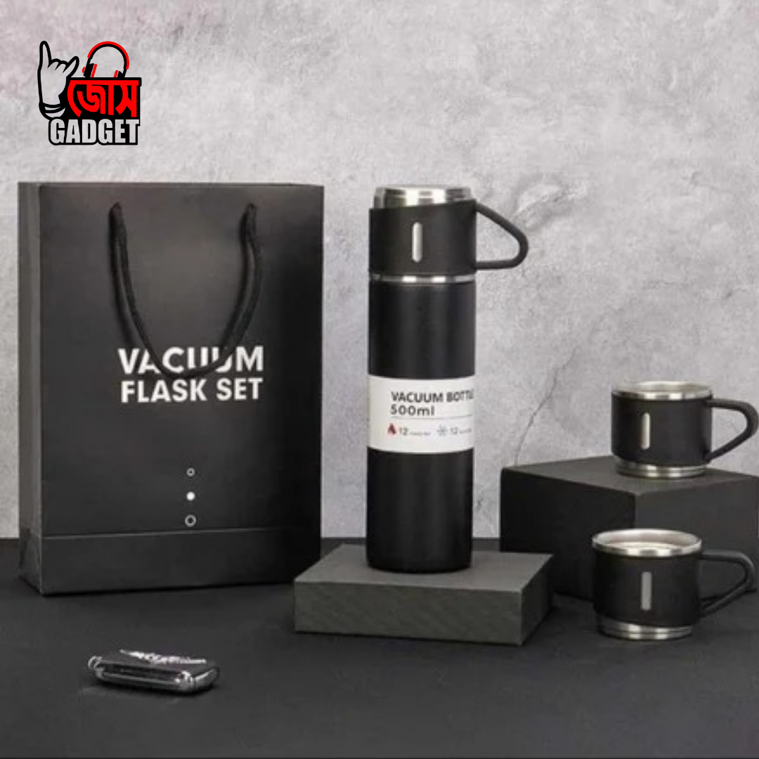 ✅ ৩ ইন ১ সেট: একটি বড় ফ্লাস্ক ও দুটি ছোট কাপসহ